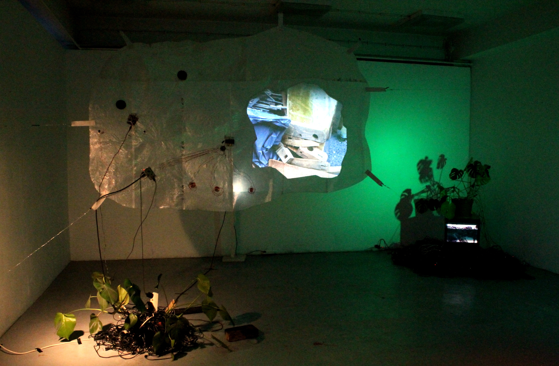 Az installáció építéséhez műanyag zacskókból olvasztott utoplastot használok. Ennek felületébe építem azt a komplex interaktív áramkört, ami egy mikrokontroller és egy mini-számítógép segítségével megmutat egy picit a lomisok tapasztalataiból. A kapacitív szenzorok kábelek lecsupaszításával készülnek, ami kábel „tisztítás” a lomisok mindennapi gyakorlata. A mikrokontrollerben és a Raspberry Piben található mikrocsipek gyártásához szükséges alapanyagok bányászata erőszakos konfliktusoktól terhes. Az installációban a két kontrolleren kívül minden alapanyag reciklált, talált, más eszközökből kiszerelt. Az installáció két assemblage-ból áll. A fő, ‘mesélő’ assemblage egy, az utoplast-ba épített interaktív áramkör, amely érintésre jeleníti meg és hallatja a lomtalanítók történeteit az utoplast felületen. A kapacitív szenzorok alapanyaga hulladék kábel (réz), az interakció egy mikrokontroller (Adafruit Flora) és egy mini-számítógép (Raspberry Pi) programozásával jön létre. A másik, ‘komparatív’ elem hulladék kábelekből, méteres léggyökerekkel bíró monstera növényből és egy televízióból áll, amin a világ távoli pontjain veszélyes hulladék szelektálásából túlélő embereket látunk (dokumentumfilm mashup). Munkamódszeremben keveredik a bőség és a szükség, avagy a „hacking for hedonism” és a „hacking for survival”, ahogy Közép-Európában is fúzionálnak a szélsőségek.